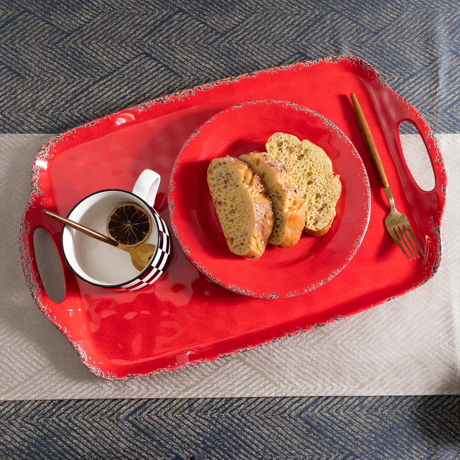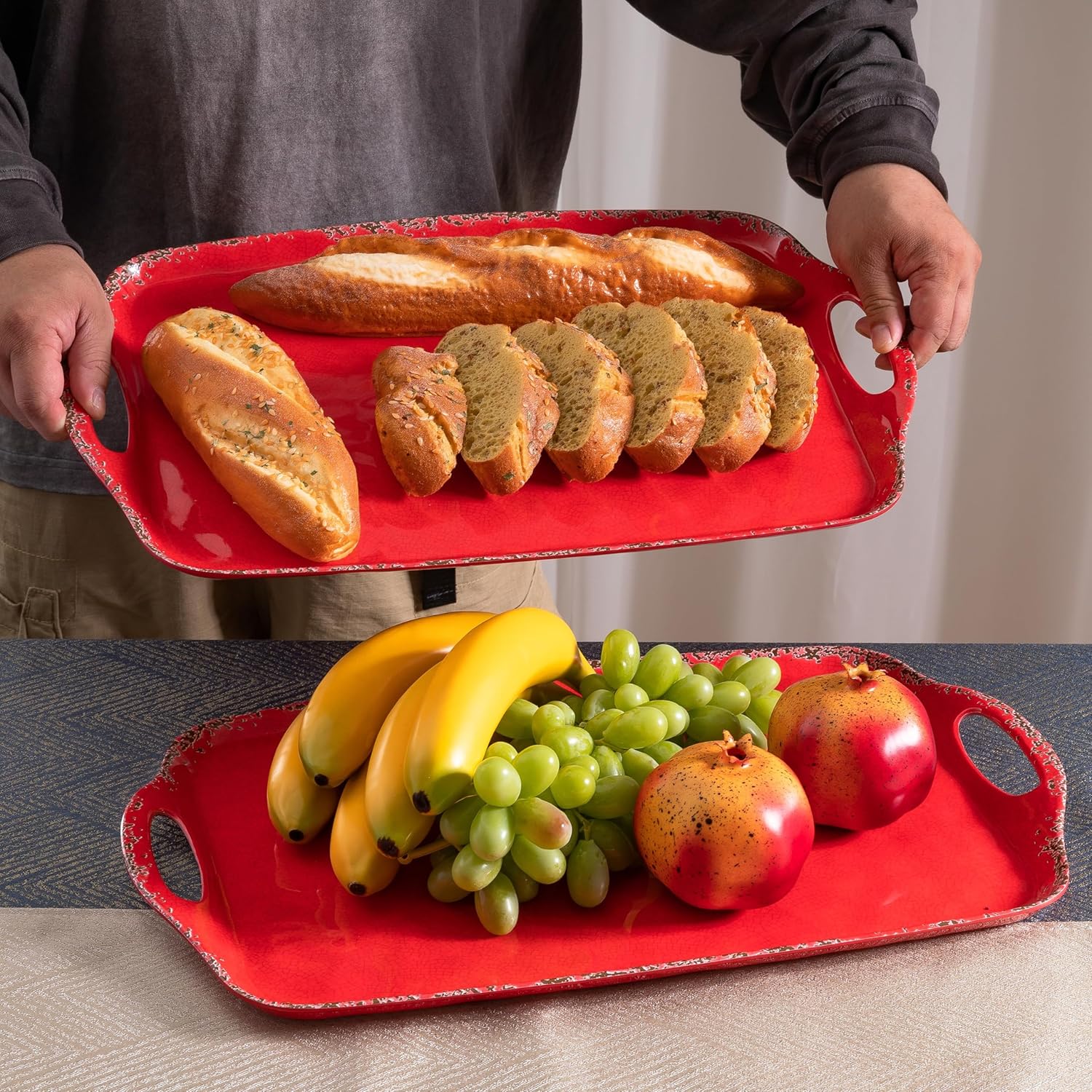 MULTIFUCTION SERVING TRAY: This red serving tray is not only as a snack platter for daily family, but also as a dinner plate for formal dinners. ideal for a coffee table tray, decorative tray, Bread Tray, Party Tray , Dinner trays for eating on couch set of 2 and holding food.