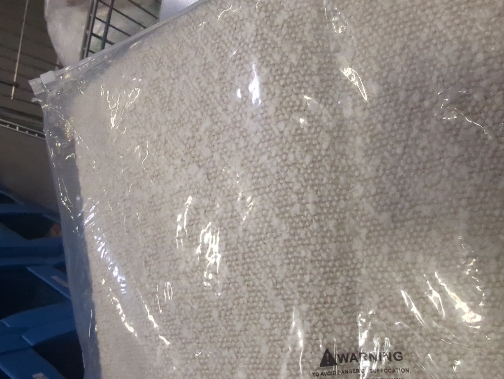 High quality boucle texture fabric with durable polyester linen backing. Invisible zipper closure, seams are double stitched and serged. These are machine washable.