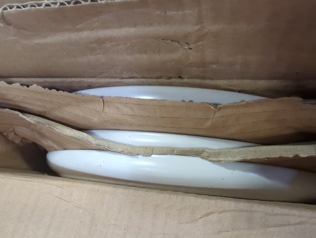 Set of 3 Dinner Plate in the Landon Sea Salt pattern by Our Table. All Speckled White,Coupe,No Trim 10 3/4.