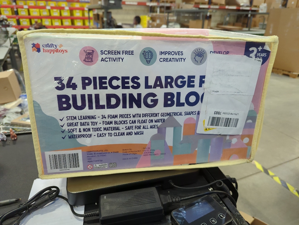 Jumbo Foam Block Value Set - The set includes 34 pieces of giant foam blocks with a variety of shapes such as cubes, colors and sizes. The pieces are made larger for babies easy grip. It comes with a clear storage bag for keeping and carrying