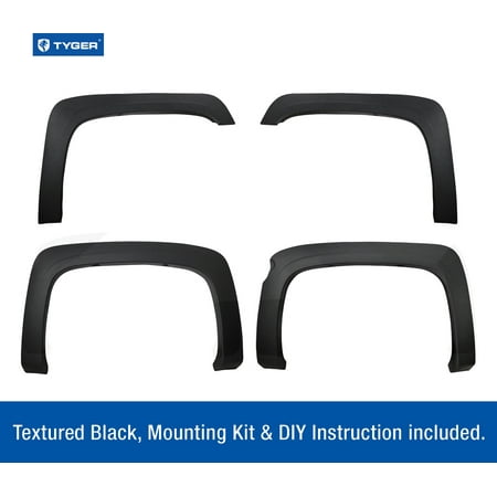 Set of 4 Tyger Auto TG-FF6C4298 For 2007-2013 Chevy Silverado 1500 5.8' Short Bed (NOT for Sierra) | Excl. 2007 Classic models | Paintable Fine-Textured Matte Black Factory Style Fender Flare Set, 4 Piece