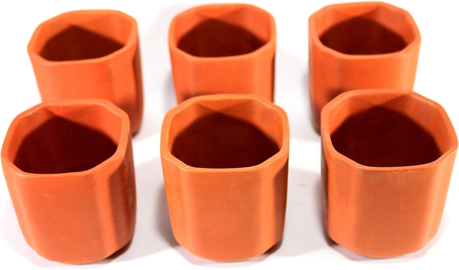 Set of 6 Clay Glasses Reusable Kullad (Set of 6) - Terracotta Glasses Tea Coffee Cups Drinkware Kullad (Octagonal Shape)