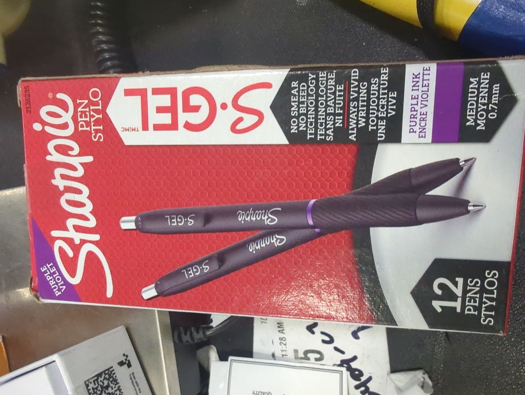 The power of Sharpie is now in a gel pen with the Sharpie S-Gel. With no-smear, no-bleed technology and bold ink, this Sharpie pen delivers always-vivid writing. It's a high-performance gel pen with a sleek, professional look that makes it a writing instrument you won't want to loan out. And the contoured rubber grip makes for comfortable writing during any task. Sharpie S-Gel offers a smooth writing experience perfect for homes, schools, or offices. Retractable gel pen for everyday writing tasks. Purple ink for bright and clear writing. 0.7mm medium tip delivers crisp, precise lines. Black plastic barrel. Dozen per pack. Features pocket clip for convenient carrying. Sold as 1 Dozen.