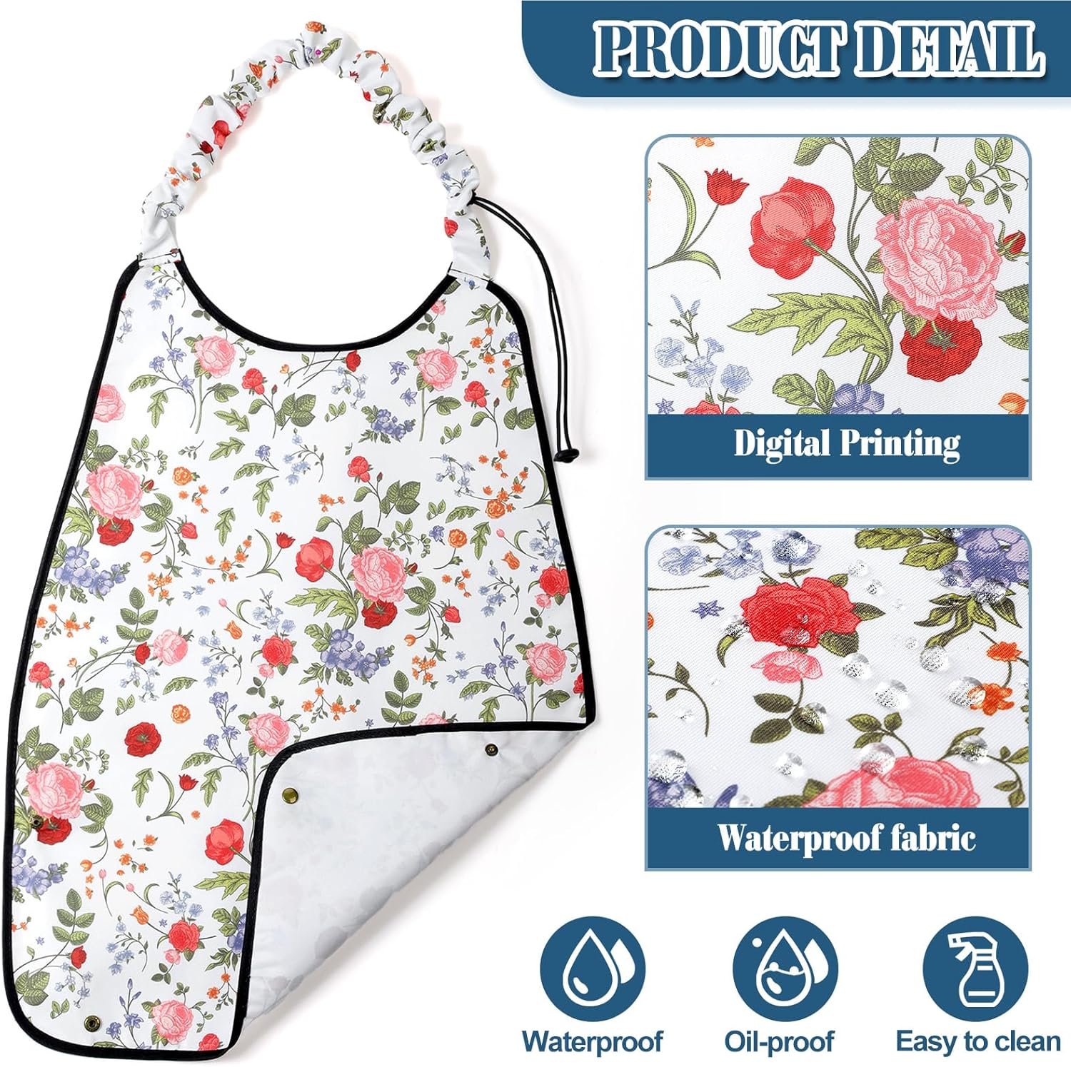 Delicate Pattern: our reusable adult bibs not only can be easily worn, but also have the beautiful flower pattern, and you can enjoy the beauty of the product while wearing it, which is much more fashionable and generous than the general bib, bringing you a happy experience