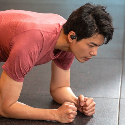 Our latest workout open earbuds, OpenFit Air, feature our signature open-ear design, allowing you to enjoy your audio while staying aware of your surroundings. The adaptable ear hooks with a pliable cut-out design improve comfort for extended listening sessions and ensure your OpenFit Air stays securely in place.