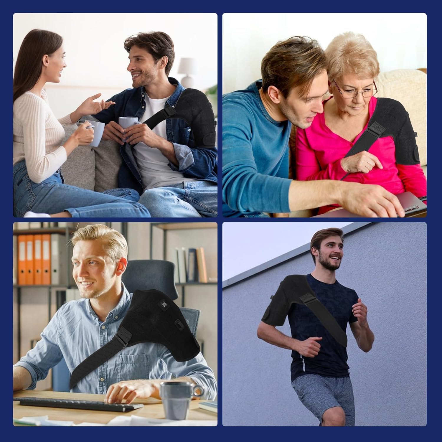Heated shoulder wrap for men and women,Shoulder straps that can be worn on both left and right shoulders. Adjustable shoulder strap length for any body type..Shoulder Heating Pads-Black
