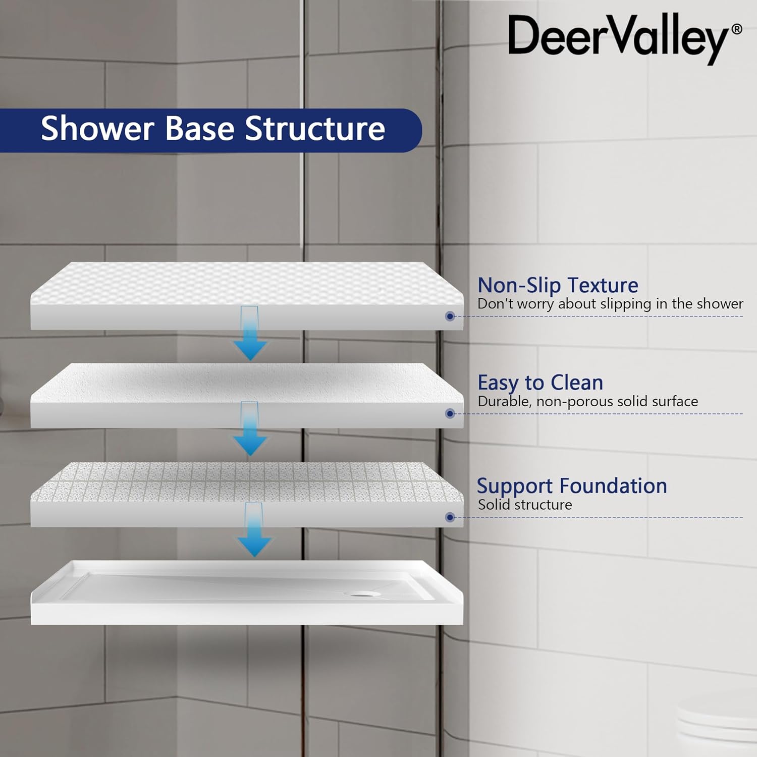 Shower Base in White with Single Threshold, Right Drain Location, Rectangle Acrylic Alcove Shower Pan for Bathroom, Non-slip