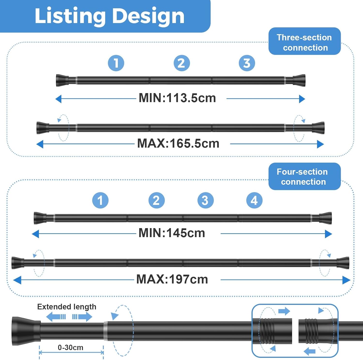 【Purchase Instructions】-In order to better meet the customer's needs for on-site use, we have this tension rod in the form of splicing assembly, please do not shoot the order if you mind!
