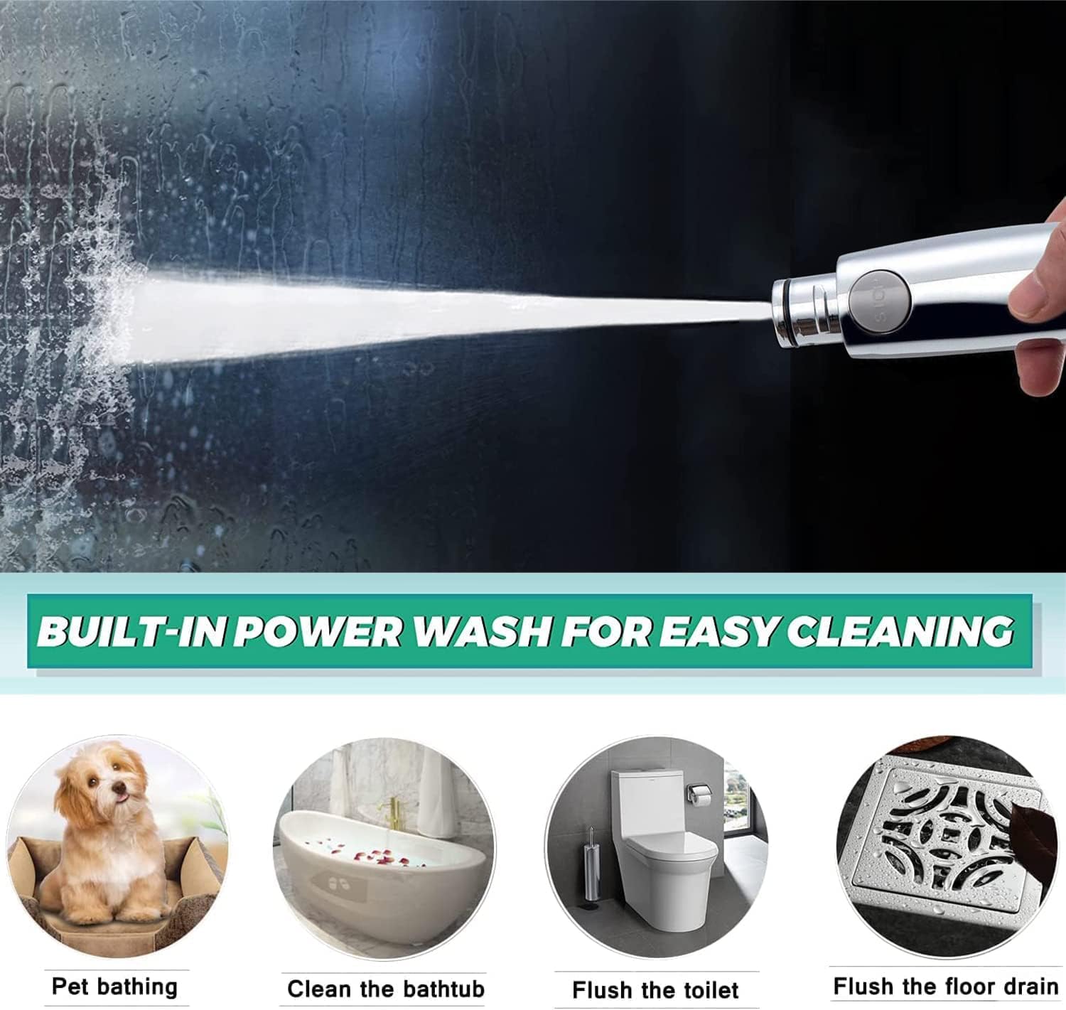 3 SETTING HANDHELD SHOWER HEAD: The chrome-plated surface with ABS and advanced TPR nozzle makes it look more beautiful and generous. The 3-mode shower mode and 78-inch long shower hose make it more convenient for you. You can use it to bathe pets, to clean the bathroom, and it is very suitable for children to bathe.