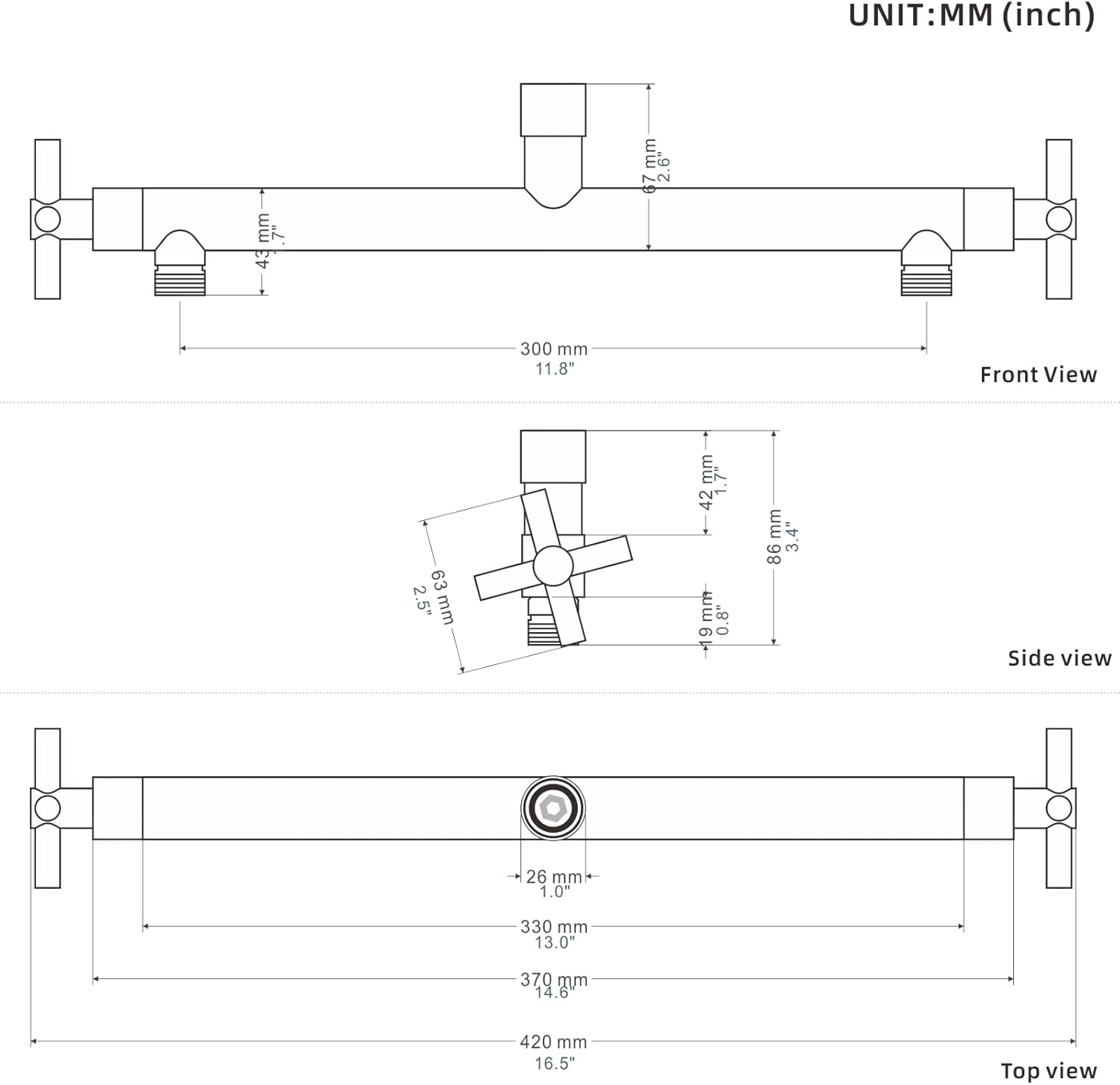 Standard Size: Standard G1/2 connections, fits most shower heads and shower arms.