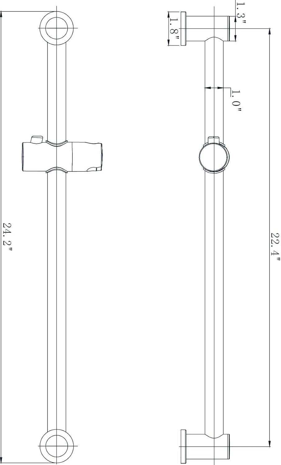 The length of this shower slide bar is 22" ,which allows you to flexibly adjust the height of the handheld shower holder within a wide range