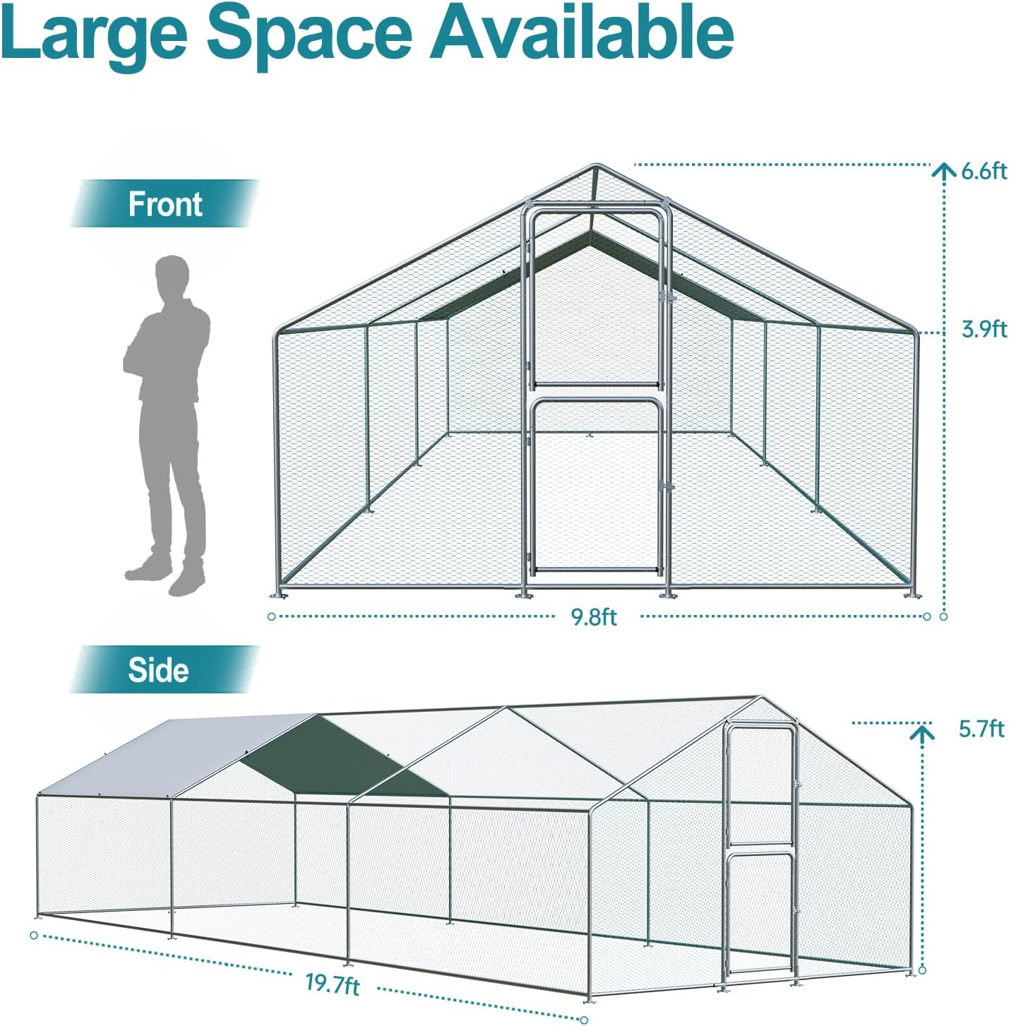 Silver 10ft x 20ft Large Chicken Coop, Chicken Coops for 30 Chickens, Chicken Runs for Yard with Water Poof & UV Resistance Cover, Spire Roof Chicken Coop Run with Double Lockable Doors for Outdoor Backyard