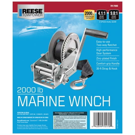 Silver 15Ft, Reese Towpower 7019400 Trailer Winch, Single-Speed, 600 lbs. Capacity, 15 Foot Strap