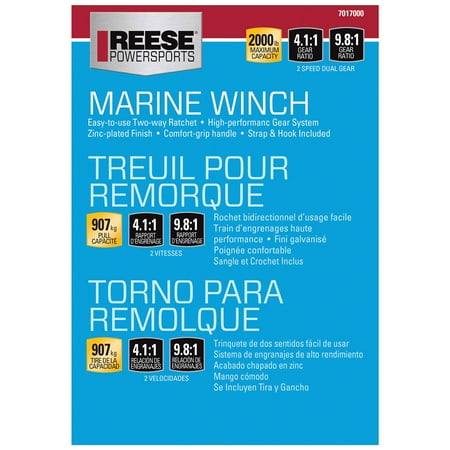 600 lbs. capacity Zinc finish for rust protection Comfort grip handle Positive hold while cranking Full length drum bearing and oil impregnated shaft bushings High carbon gears resist wear Mounting hardware sold seperately
