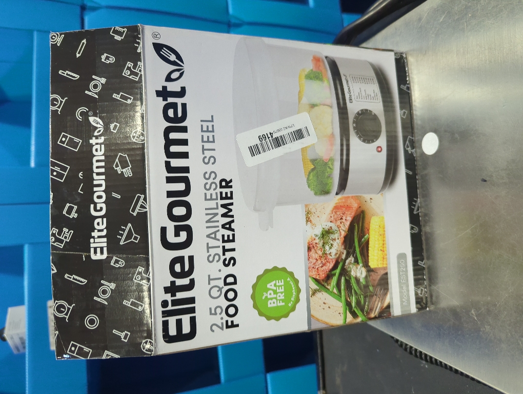 Cook, eat and be healthy with the extra-large elite gourmet 2 quart food steamer. Let off some steam by cooking a variety of your favorite grains, vegetables, fruits, eggs, seafood, meat and poultry. Steamer has a 60 minute timer with a safety auto-off. The tray also comes with 6 egg-rests for steaming perfect hard-boiled eggs. When it comes to cleaning up, the steam tray is fully collapsible for storage. Nested storage design fits neatly in your kitchen cabinet. Dishwasher safe parts.. Appliance Type: Steamer. Capacity (L): 1.89. Capacity (qt.): 2 qt. Color/Finish: Stainless Steel. Color/Finish Family: Black Stainless Steel. Commercial Use: Heavy Duty. Features: No Additional Features. Includes: No Additional Items. Number of Crocks: 1. Number of Cups: 8. Number of Pieces: 1. Number of Temperature/Cooking Controls: 3. Pan Shape: Oval. Product Weight (lb.): 1.98 lb. Returnable: 90-Day. Small Appliances Color Family: Silver. Small Electric Product Type: Food Steamer. Wattage (W): 400 W. Certifications and Listings: No Certifications or Listings. Product Depth (in.): 8.78 in. Product Height (in.): 8.94 in. Product Width (in.): 5.20 in. Number of Cups: 8. Commercial Use: Heavy Duty. Pan Shape: Oval
