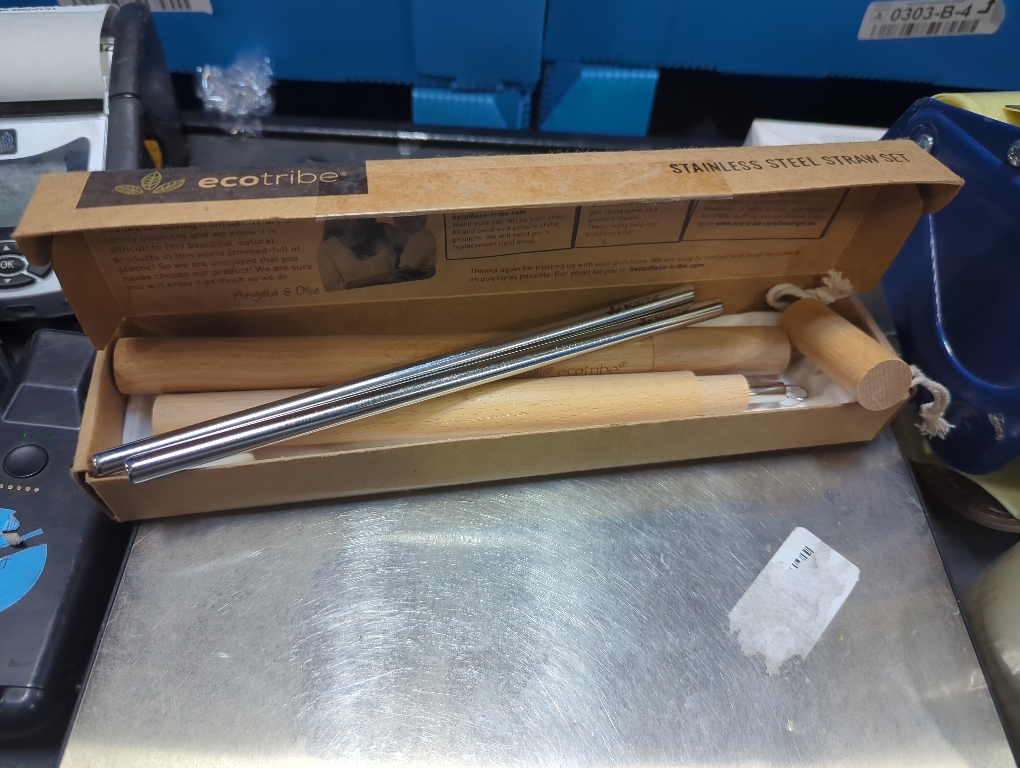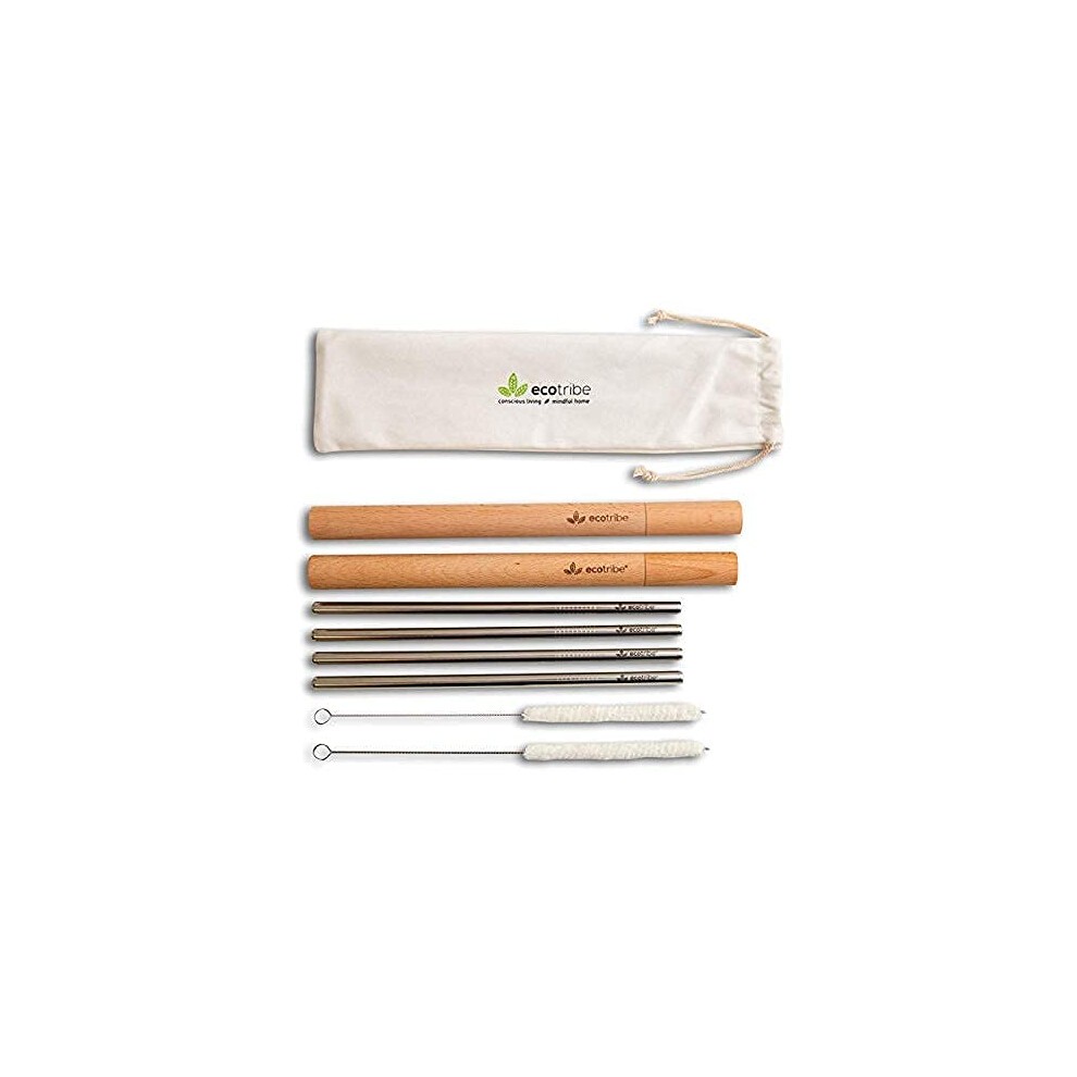 Silver Ecotribe 4 Reusable Metal Straws with Portable Case - Stainless Steel 8.5 - Eco-Friendly Drinking Straw Set with 2 Cleaning Brushes & Travel Bag