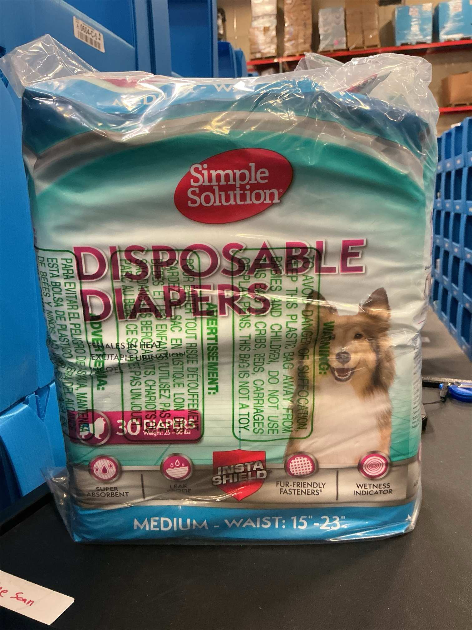 Simple Solution Disposable Dog Diapers, Female Dog Diapers, Puppy Potty Training, Incontinence and Heat Cycle Protection, Medium Diapers for Dogs, 15-23 Inch Waist, 30 Count