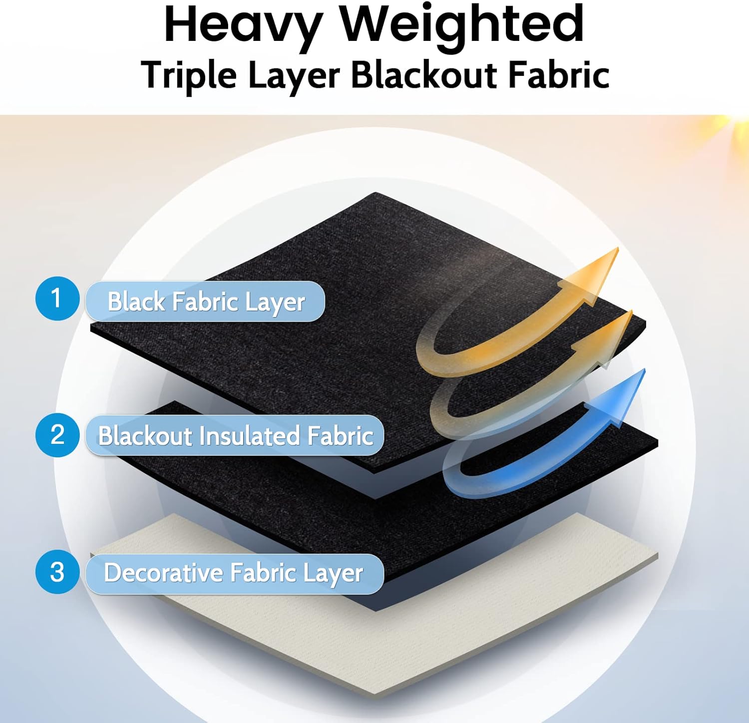 HIGH QUALITY MATERIAL AND GOOD WORKMANSHIP:After improving the technical,these full blackout curtains are made of Heavy Weighted Triple-Weave Blackout Fabric,enhances light blocking,but does not make the curtains too heavy