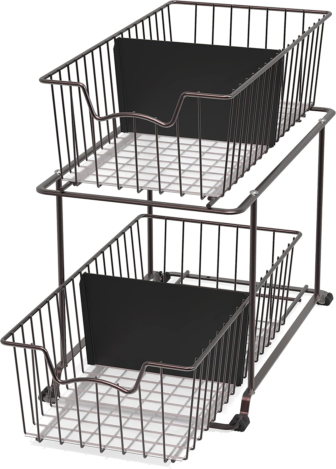 SimpleHouseware 2 Tier Cabinet Wire Basket Drawer Organizer, Brown