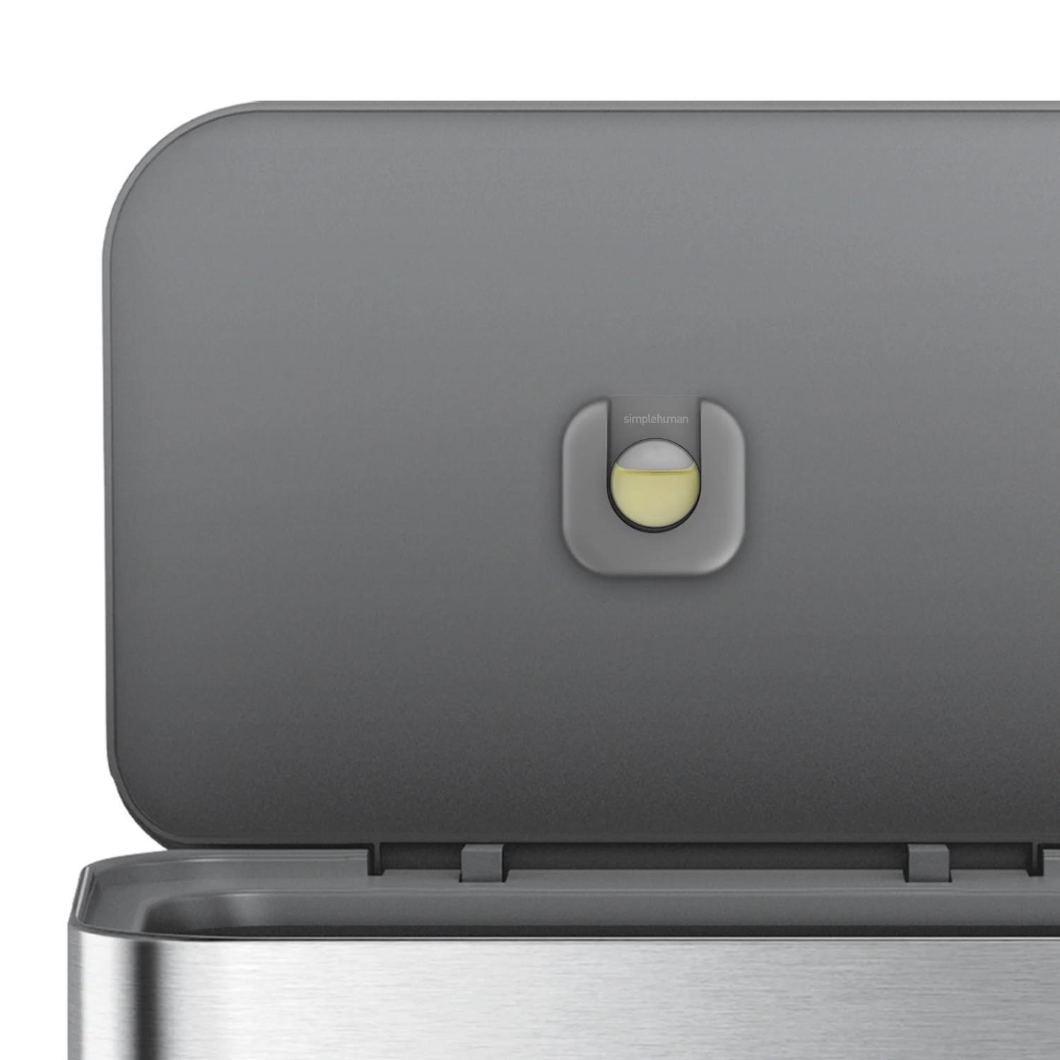 The stainless steel liner rim grips the liner and keeps it hidden. An innovative liner pocket stores and dispenses liners from inside the can for a faster liner change. And with no inner bucket, there's more space for trash. Strong wide steel pedal is designed to last, and our patented lid shox technology ensures a smooth, silent close every time, and the can's stainless steel surface is protected by an invisible silver-ion coating that resists fingerprints and germs. Our Code M custom fit liner fits this can perfectly - no bunching or slipping for a cleaner trash experience. Liner refill packs store easily in this can's liner pocket.