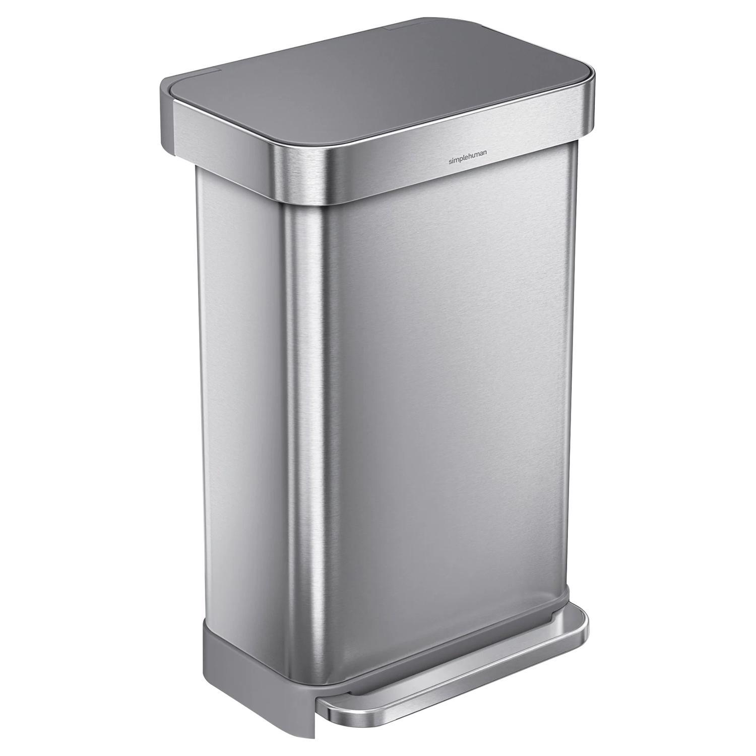 Simplehuman 45 L Metallic Silver Plastic/Stainless Steel Rectangular Trash Can