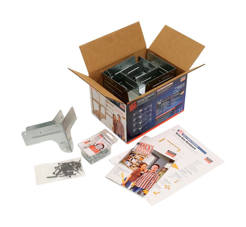 The WBSK Workbench and Shelving Unit Hardware Kit provides all the necessary hardware, fasteners and plans to build a workbench or shelving unit. The kit features the Simpson Strong-Tie Rigid Tie RTC2Z corner connector that makes it easier to make strong and durable corner connections with 2x4 lumber using no angle cuts or bolts. Each kit contains enough RTC2Z connectors to construct one workbench. Two kits are necessary to build a four shelf unit. With the WBSK kit, a professional quality project can be achieved in a couple of hours. When lumber is added, the Workbench or Shelving Unit Hardware Kit has everything you need to customize and complete your project to fit your space.