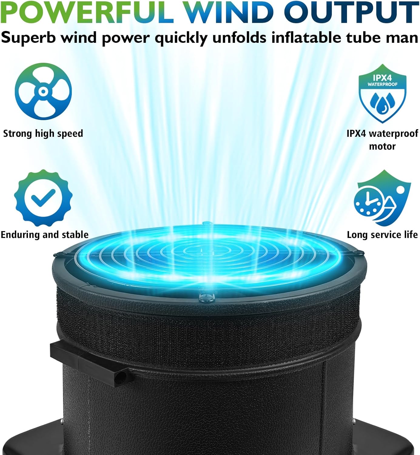 POWERFUL WIND OUTPUT - The powerful 1/4 HP blower produces amazingly strong winds thanks to its proven high performance motor. Its outstanding reliability and superior quality assurance. Let your inflatable tube man perform higher leaps and more beautiful dance moves