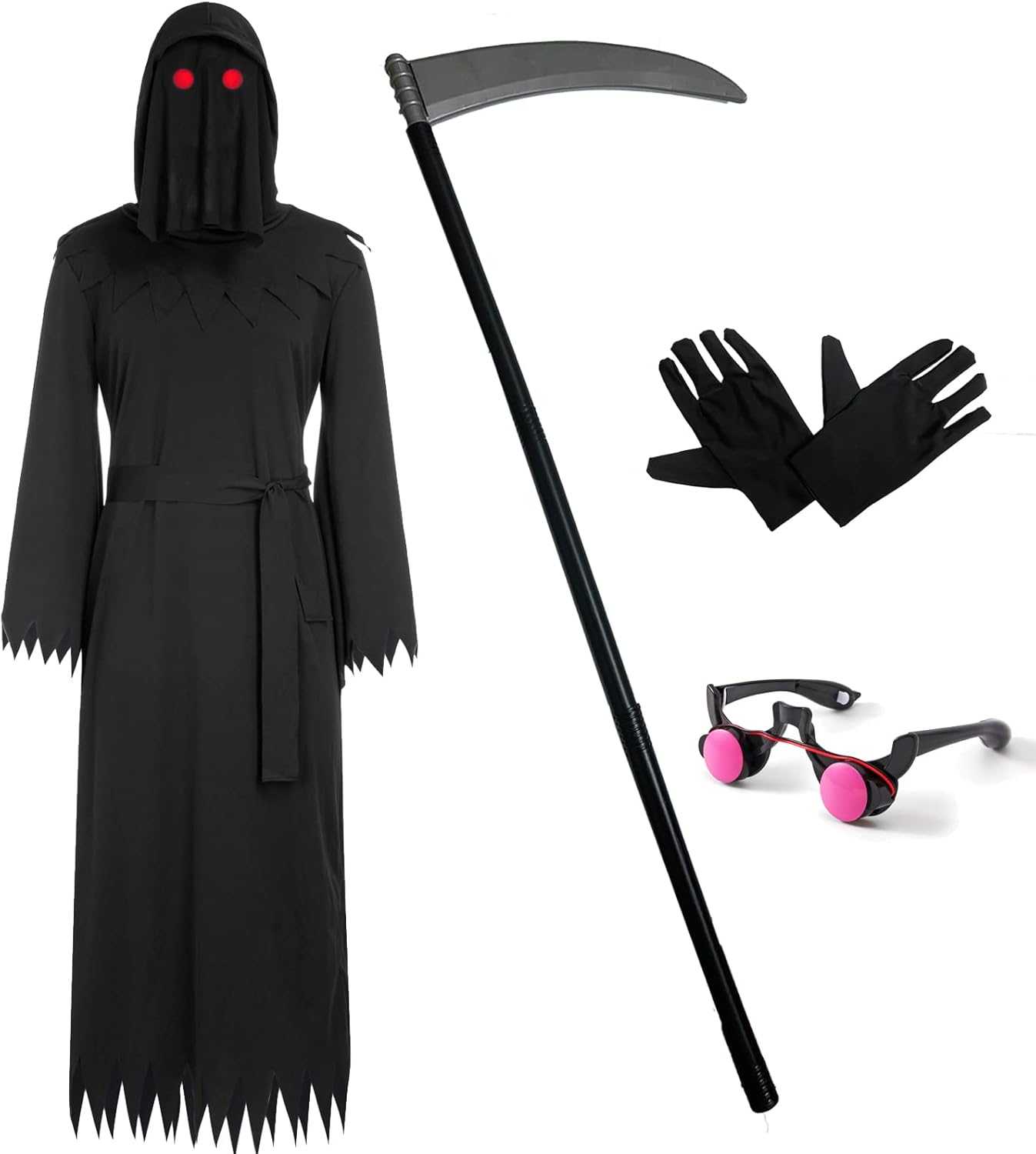 Size 10-12 years... Colorful House Grim Reaper Costume for Boys, 7-Piece Halloween Set, Death Reaper Costume
