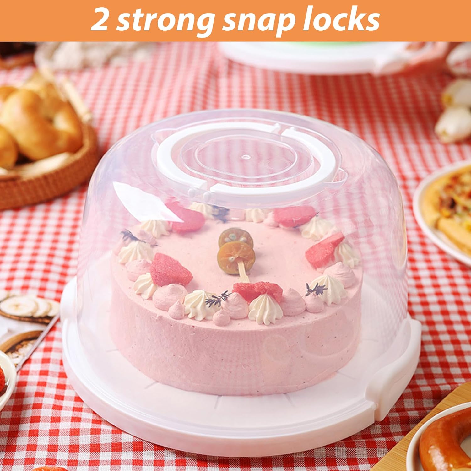 【Premium Cake Container】The round cake storage with lid and handle is made of food-grade PP material, long lasting service and easy to carry to anywhere and its seal prevent leakage or spills during transport