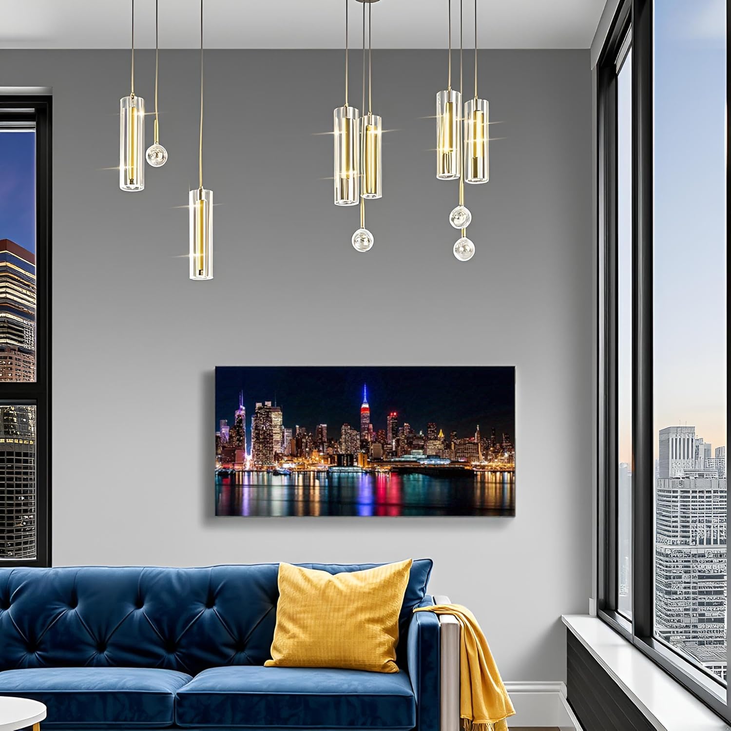 Size 10x60 Modern New York City Night Canvas Wall Art Manhattan Skyline Landscape Artwork for Living Room Home Office Wall Decor Gift Print Framed