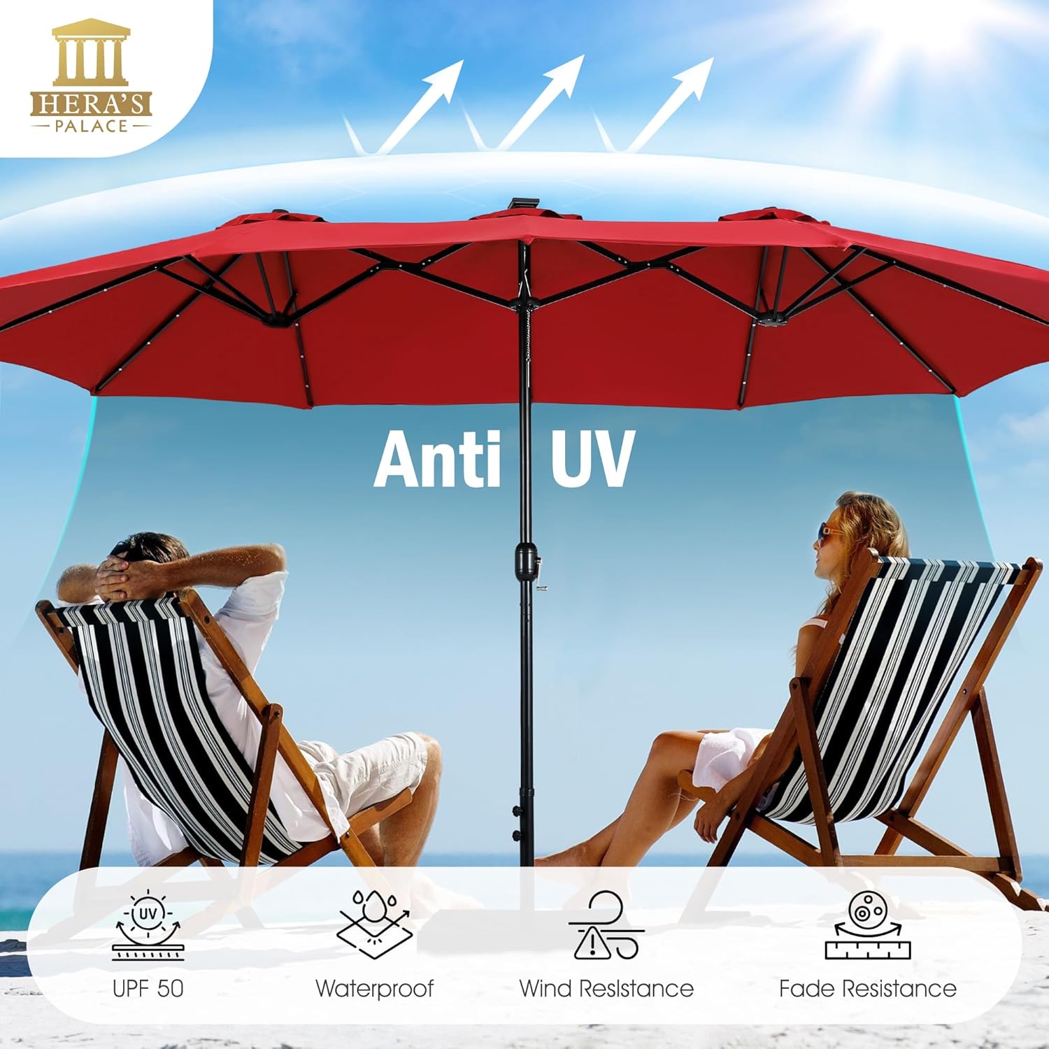 Advanced UV Protection & Waterproof: Constructed from premium 100% polyester fabric, our patio umbrella provides exceptional functionality. Highly breathable for proper airflow and ventilation, it also boasts waterproof properties, offering reliable protection against rain