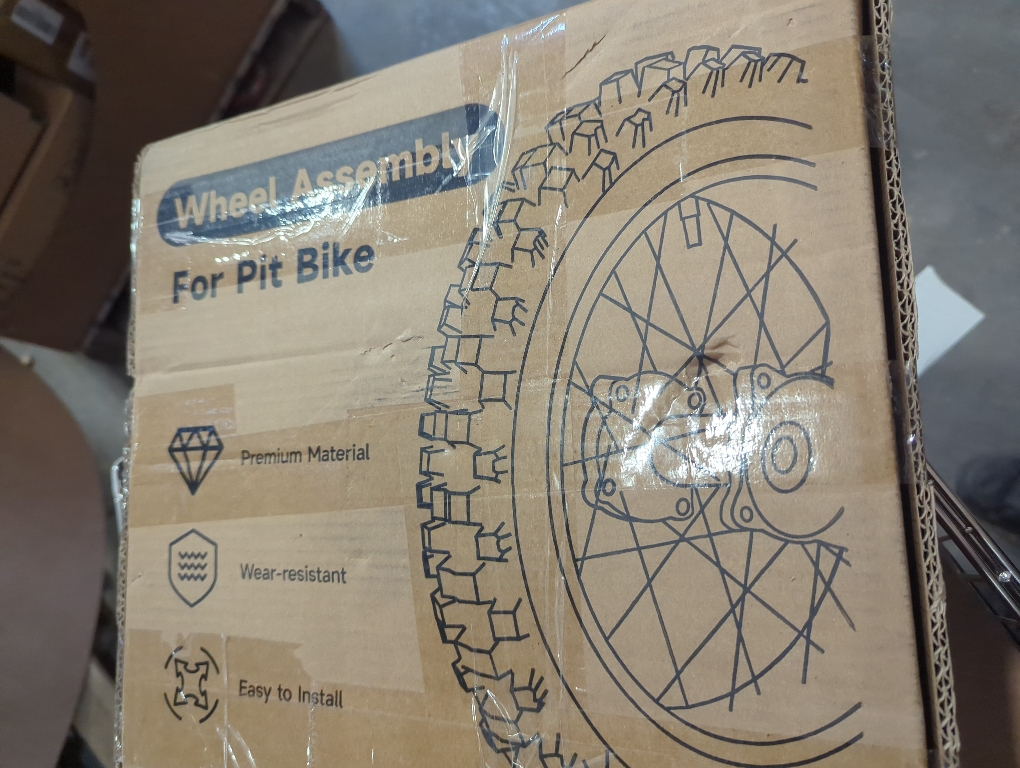 Package: 1 X Rim, 1 X 3.00-14 Inner tube, 2 X Red stem valve caps, 2 X Black stem valve caps,1 X Rim strips, 1 X Metal cleaning rasp, 6 X Self-Adhesive round patches, 2 X 12mm Bearings