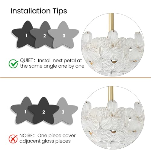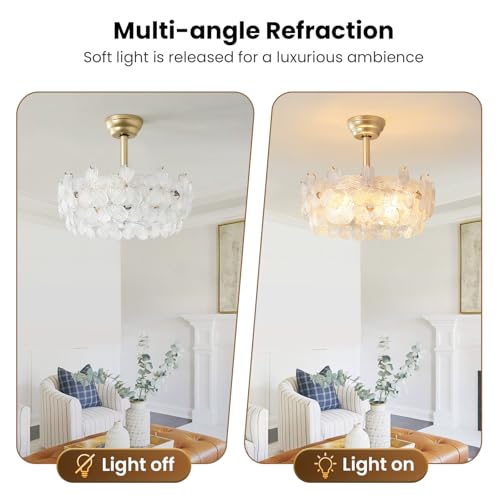 Easy Installation & Premium Material: The fandelier ceiling fan with light comes with 2 adjustable height poles (7.87" 3.94") and 4 extra glass petal. The most components have been pre-assembled. Rust-resistant metal frame and removable glass petals are easy to maintain and clean.