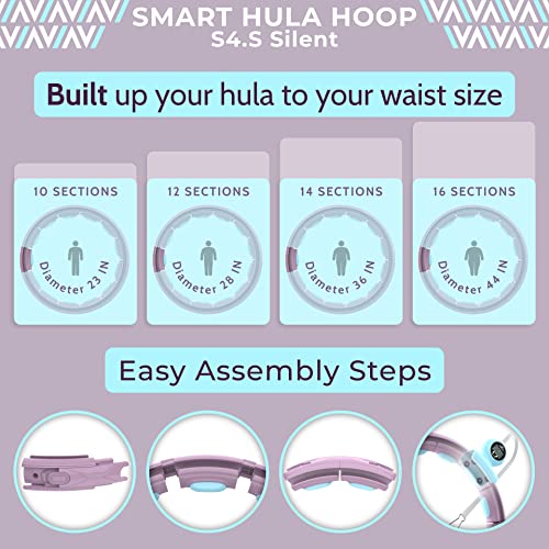 Size 22-44 Color purple Swiss Activa S4.S Silent Weight Loss Hula Hoop with Counter -Waist Size 22-44in - Infinity Hoop- Smart Weighted Hula Hoop- Smart Hula Hoop- Weighted