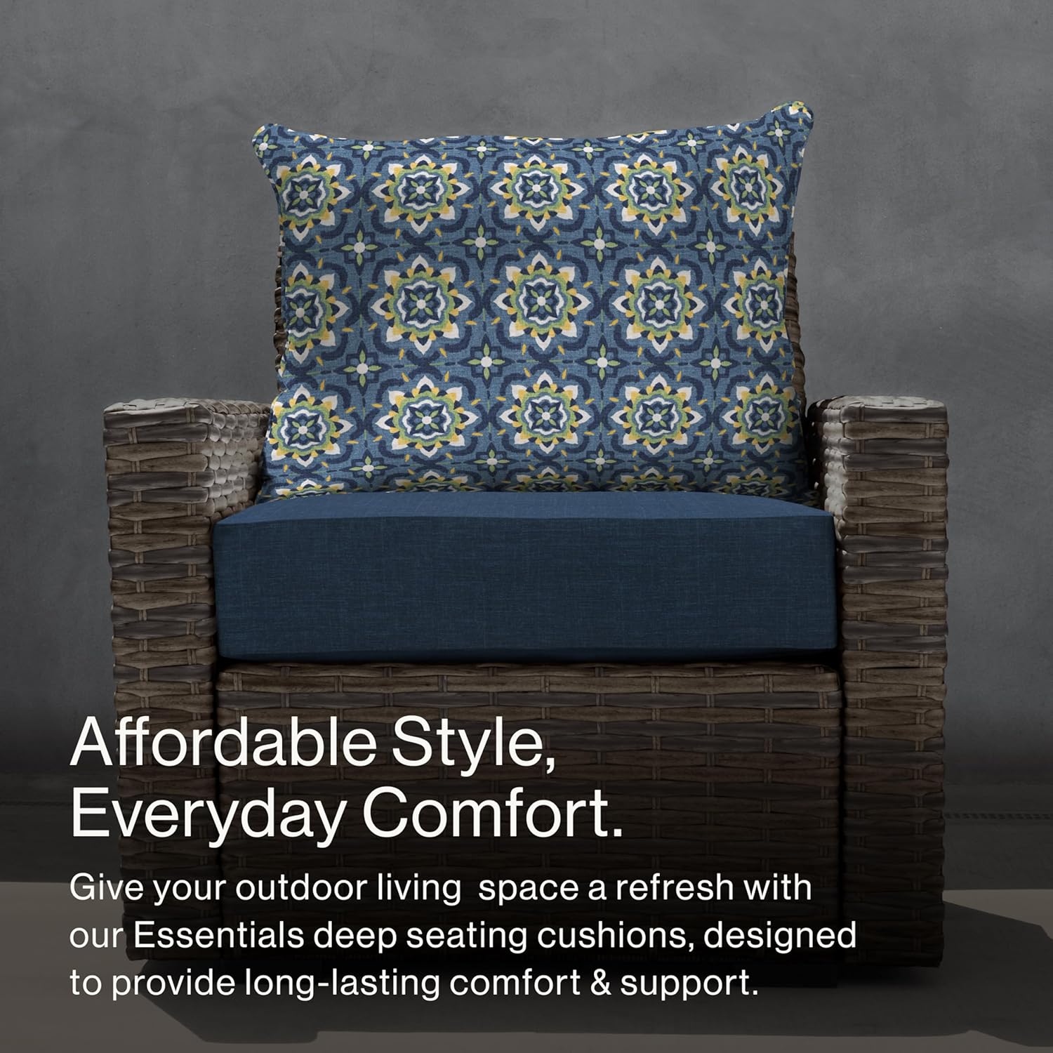 Size 24x24 Color Blue Honeycomb Outdoor Essentials Deep Seat, 24 x 24, Medina Medallion Blue Chair Cushion for Patio Furniture