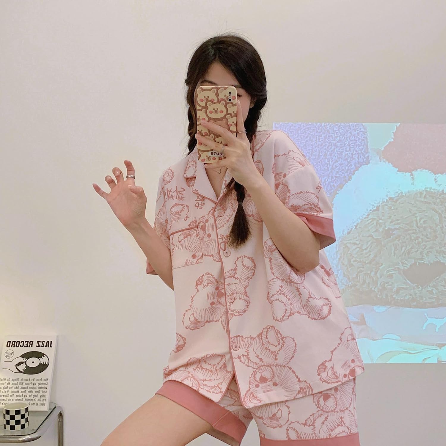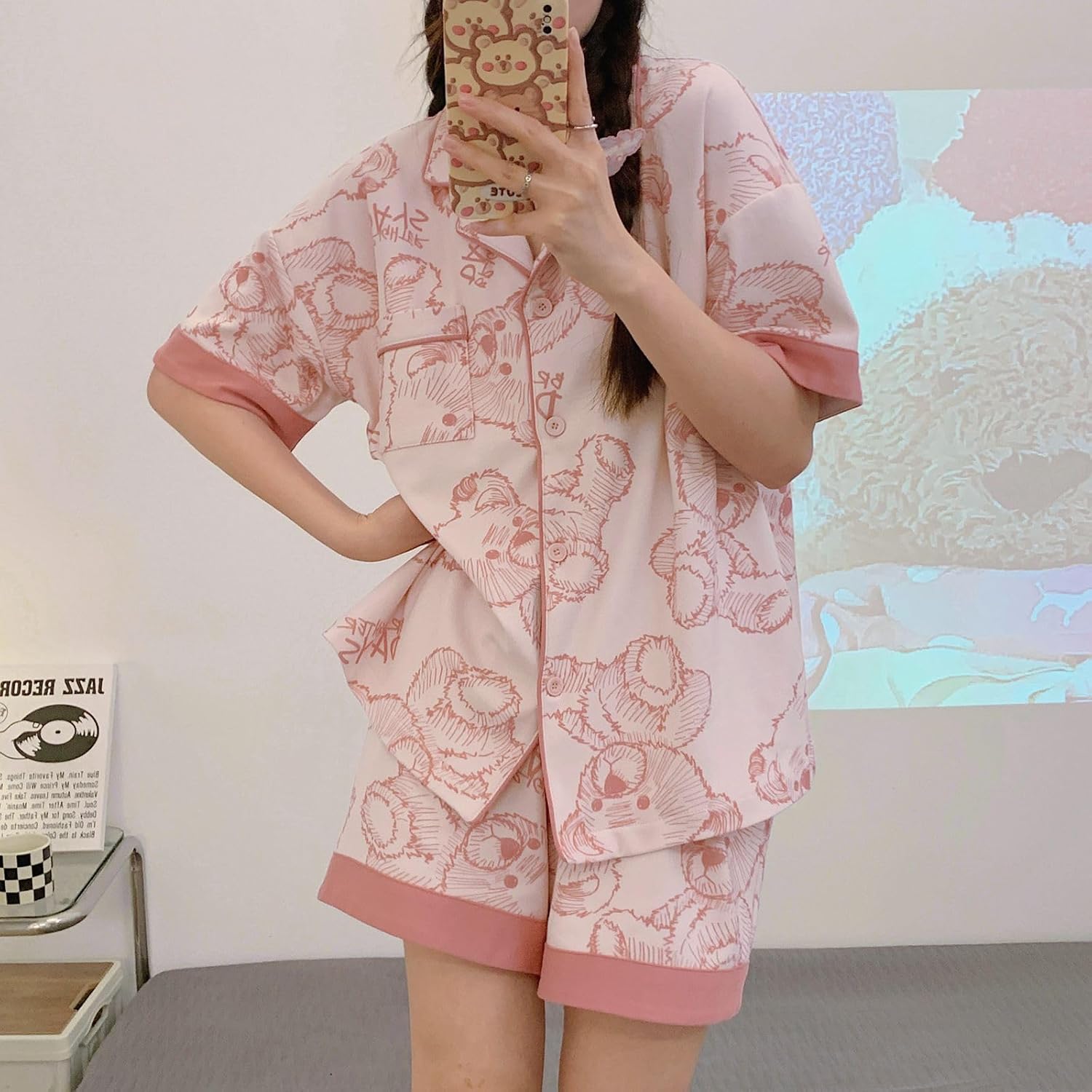 Cute and kawaii summer pajama set for women with short sleeves and short pants, perfect for hot weather.