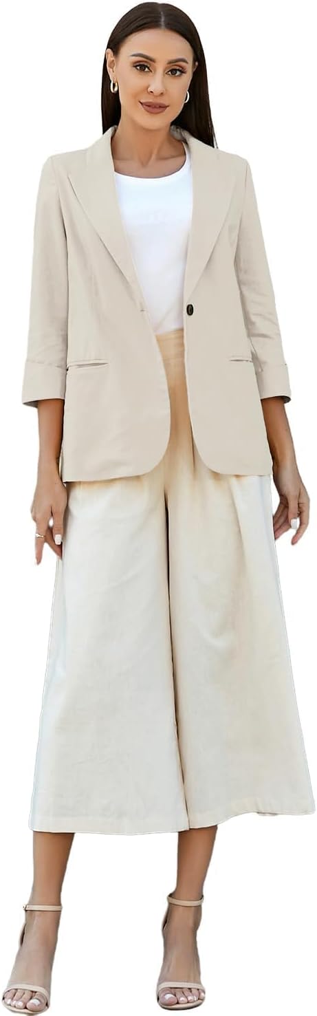 Size 3 XL..Linen Blazer Women 3/4 Sleeve Lightweight Spring Summer Blazer Jackets