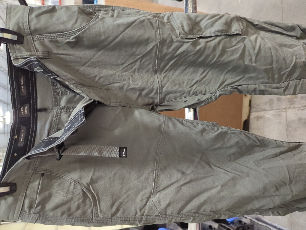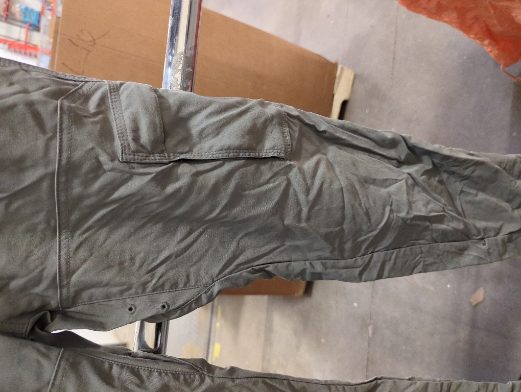 MESH LINED POCKETS- Left thigh zipper cargo pocket with double entry, and back patch pockets with flap at right pocket