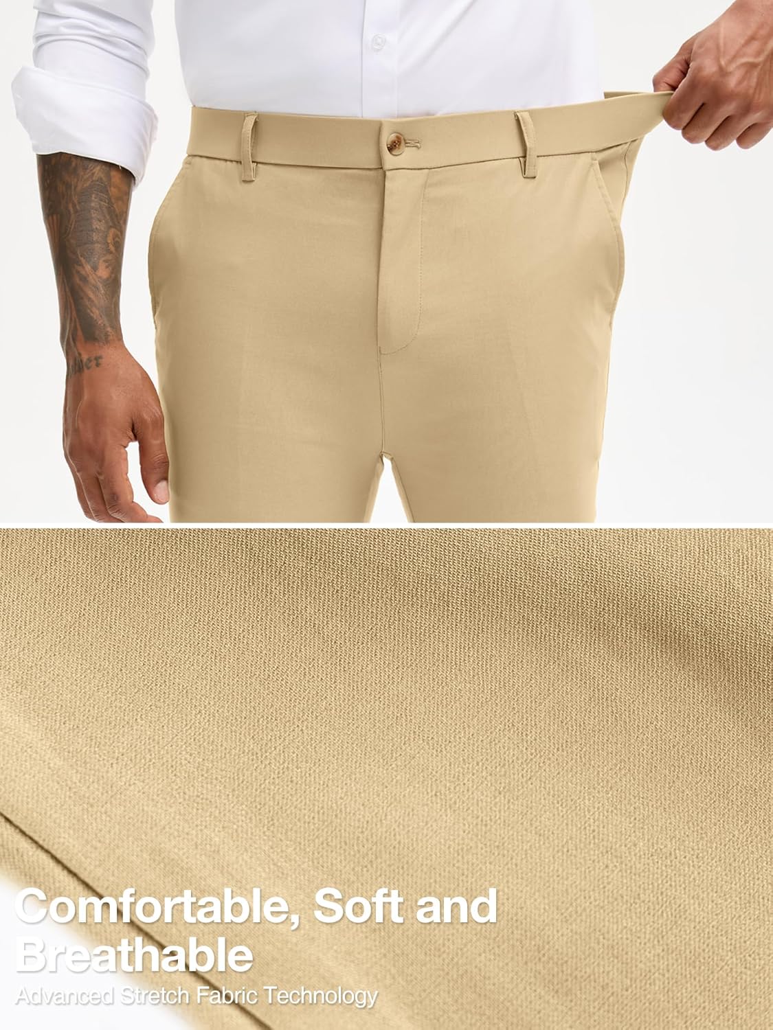 【Wrinkle-Free & Stretch Comfort】Wrinkle-resistant technology keeps the pants virtually wrinkle-free, eliminating the need for daily ironing. They can be folded, stored, and remain wrinkle-free. Additionally, we have incorporated stretch fabric into the waistband for a comfortable, flexible fit