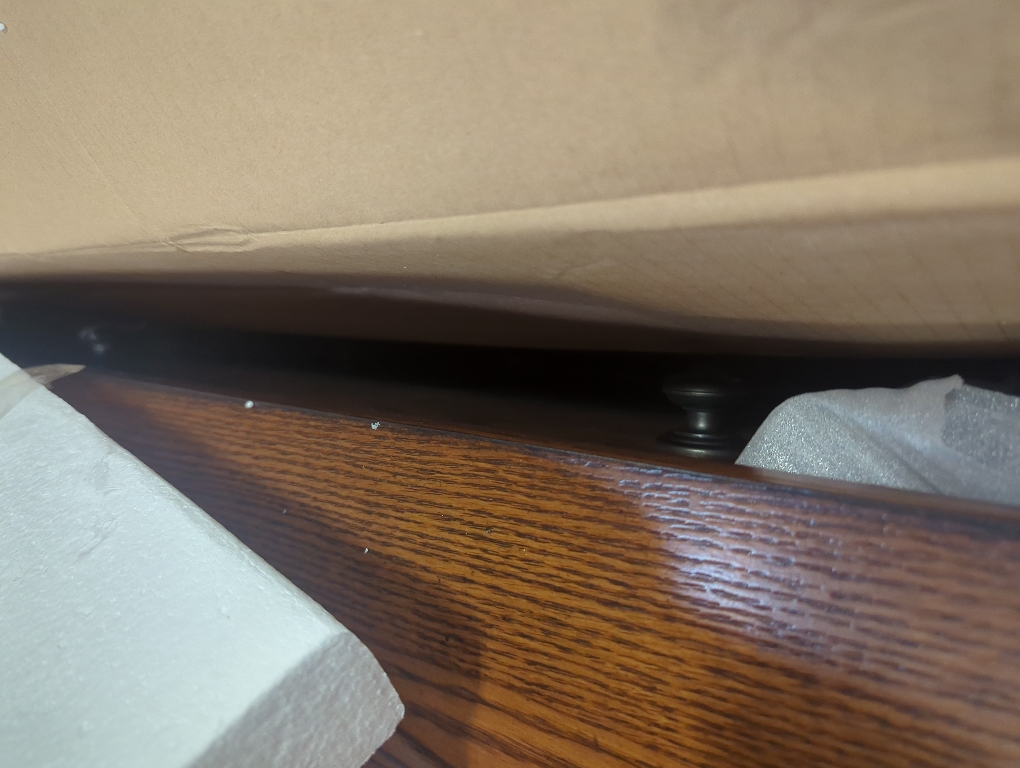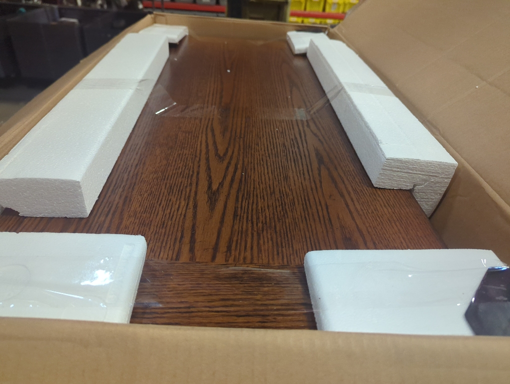 New Open box for inspection Size 38x18x53 Color brown Wood: Rubberwood Solids w/ Oak Veneers Finish: Aged Oak Dimensions: W38 x D18 x H53 Box Dimensions: W41 x D20 x H57 Weight: 169 lbs. Cubes: 27.44