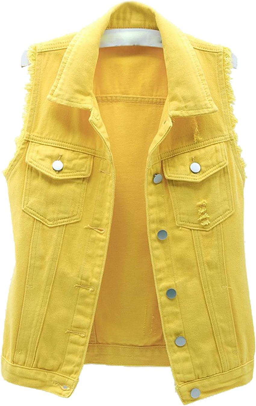 Size 3XL CURRENT Women's Casual Denim Waistcoat Slim Fit Frayed Sleeveless Jacket Ripped Tops with Pockets