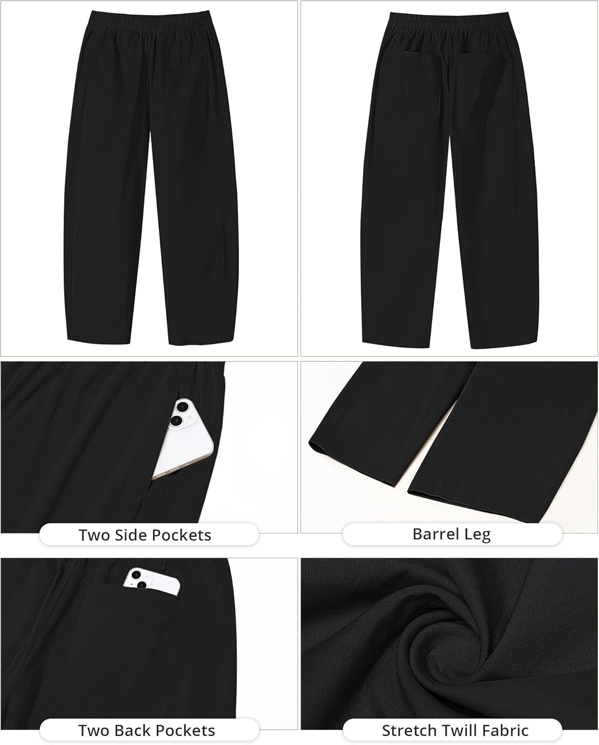 3. SIZE 3XL-GRAPENT Wide Leg Pants Woman High Waisted Trendy Cropped Barrel Pull On Baggy Elastic Waist Loose Fit Pants with Pockets