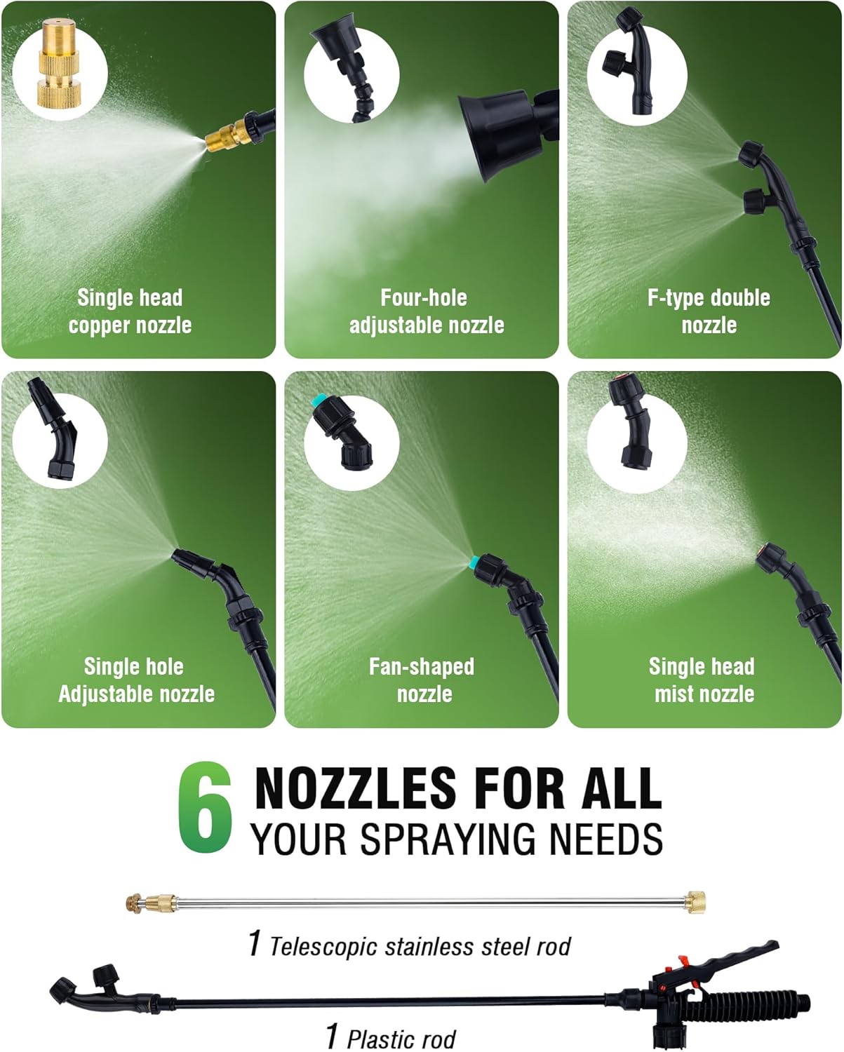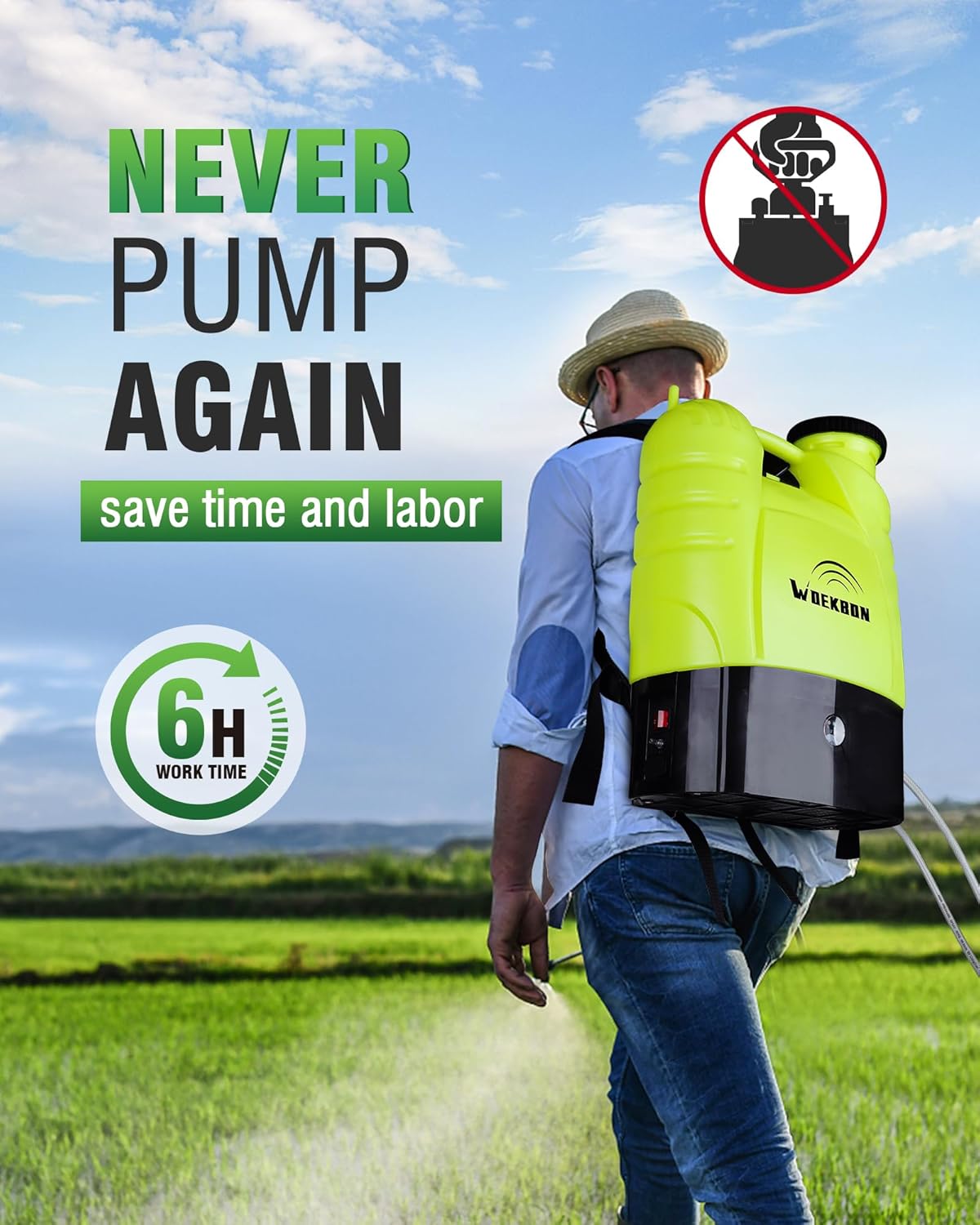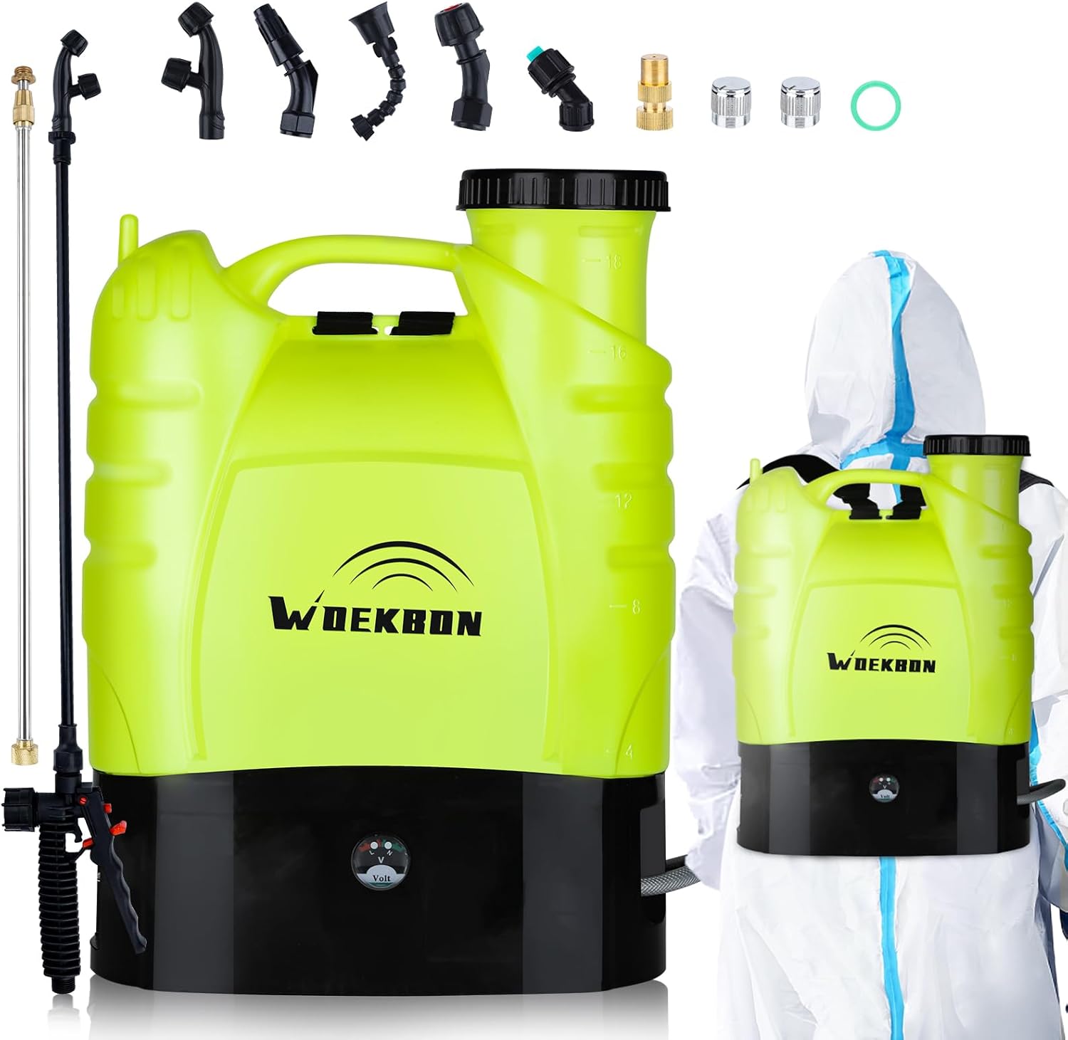 Size 4 Gallon Battery Powered Backpack Sprayer Electric Garden Pump Sprayer with Lithium Battery for Long Time Spray Brass Telescope Wand and Multiple Nozzles for Spraying Cleaning