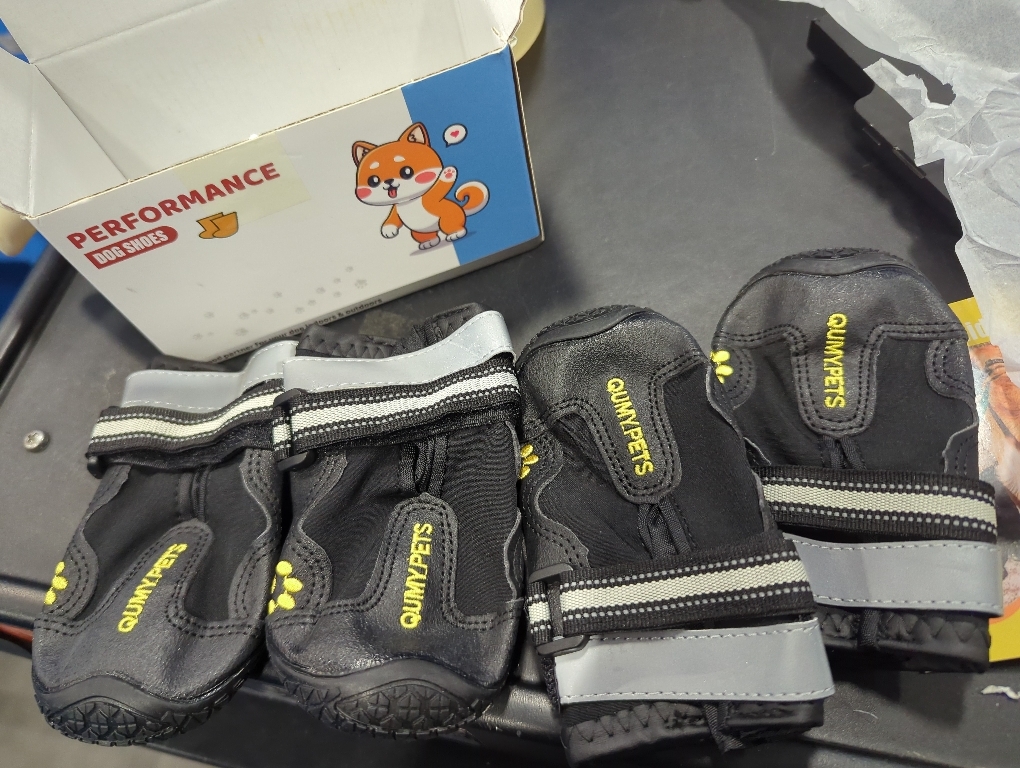 Size 4 QUMY Dog Shoes for Large Dogs, Medium Dog Boots & Paw Protectors for Winter Snowy Day, Summer Hot Pavement, Water-Resistant in Rainy Weather, Outdoor Walking, Indoor Hardfloors Skid-Resistant Sole