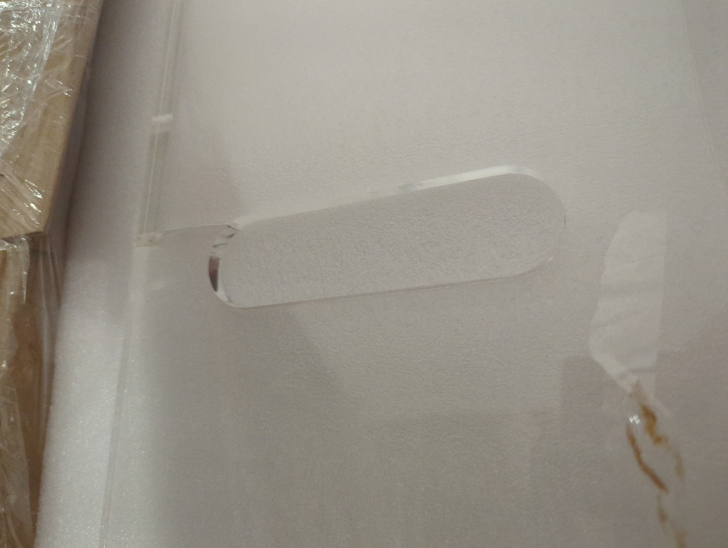 USED Slight crack Size 48 Premium & Clear - Crafted from top-grade acrylic with a sturdy metal base, this sleek podium offers a spacious, transparent surface and integrated storage for all your essentials.
