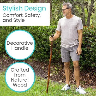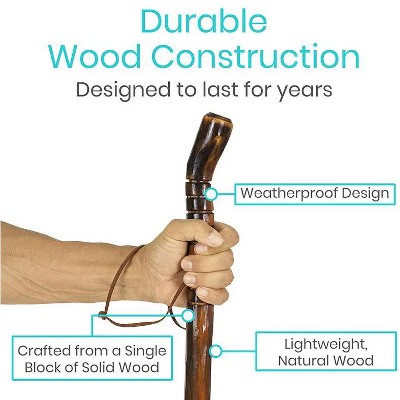 Size 48 Color Brown Vive Health Wooden Walking Stick Handcrafted Waterproof With Leather Wrist Strap for Women, Men, Seniors
