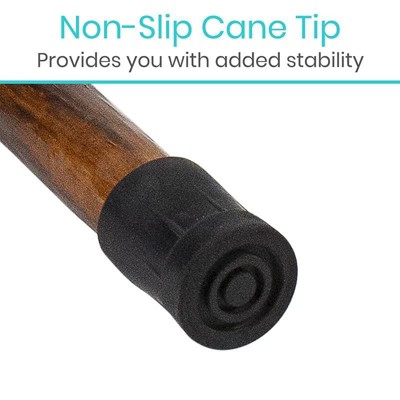 The walking pole is capped with a large, nonslip rubber tip to provide greater traction on smooth surfaces