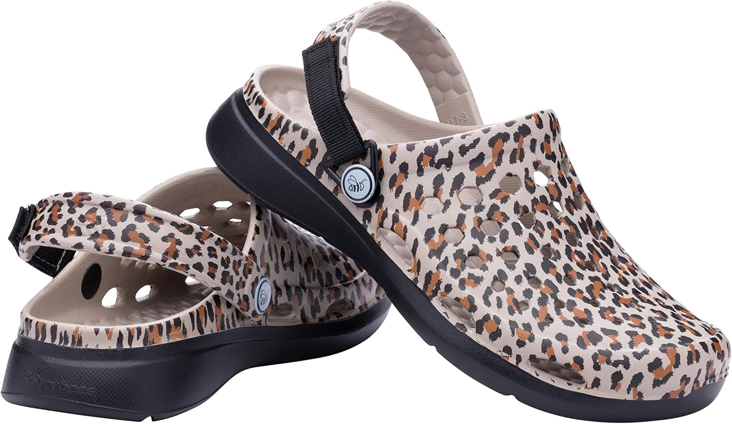 Size 5 Joybees Modern Clog - Women's and Men's Comfortable Supportive Slip-on Shoe with Adjustable Strap - Leopard - Women's, Men's