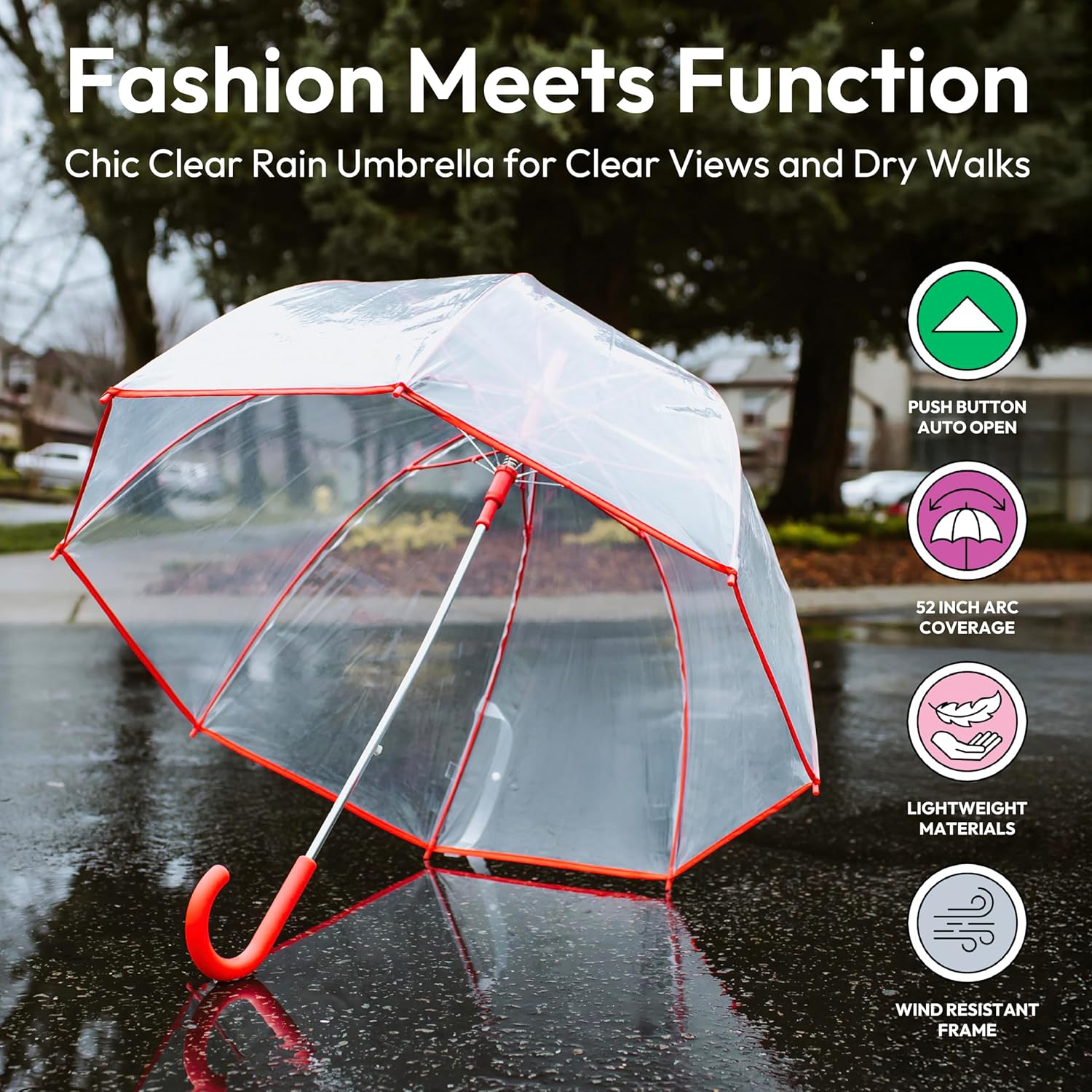 PERFECT FOR SPECIAL OCCASIONS: Our clear domed umbrella is not only functional but also stylish. It's perfect for weddings, outdoor events, or just a casual walk in the rain. Add a touch of elegance to your outfit while staying dry and protected