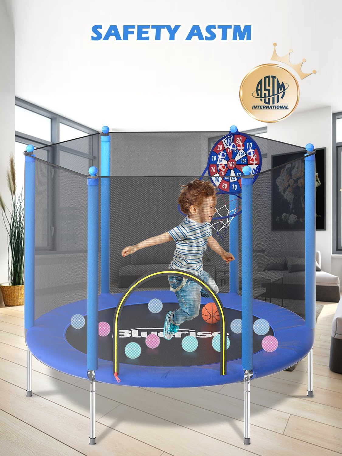 Size 55IN 6FT 【ASTM Standard Safety Specification】BLUERISE 55" toddler trampoline provides children with a safe trampoline experience, with lab-tested. Safety is paramount. This trampoline can be applied to various indoor scenarios.